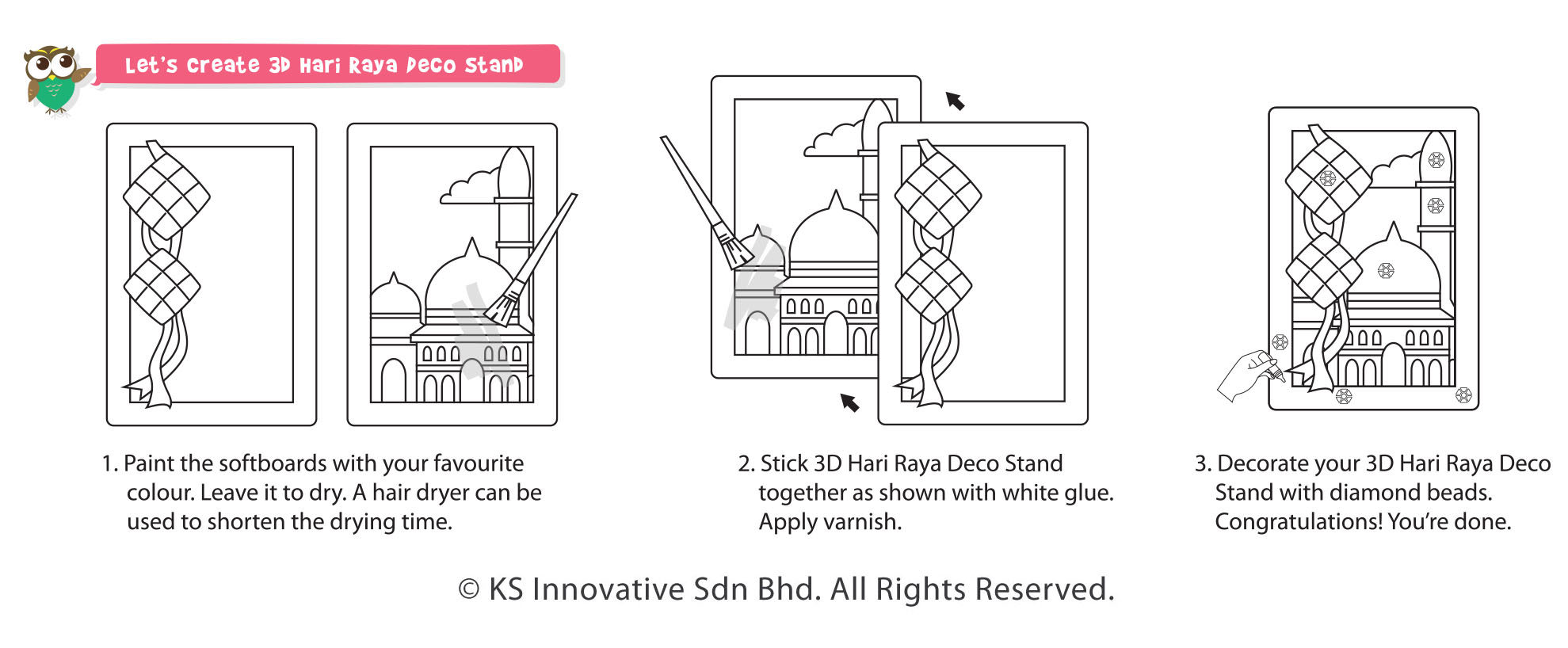 Embellish your festive home with paint-it-yourself Hari Raya decoration stands! Comes in 2 creative designs comprising of a Mosque and a Kampung House. They will be the centerpiece of family chats when displayed for all to see this coming Raya! The diamond beads also add a bling touch to the 3D effect.