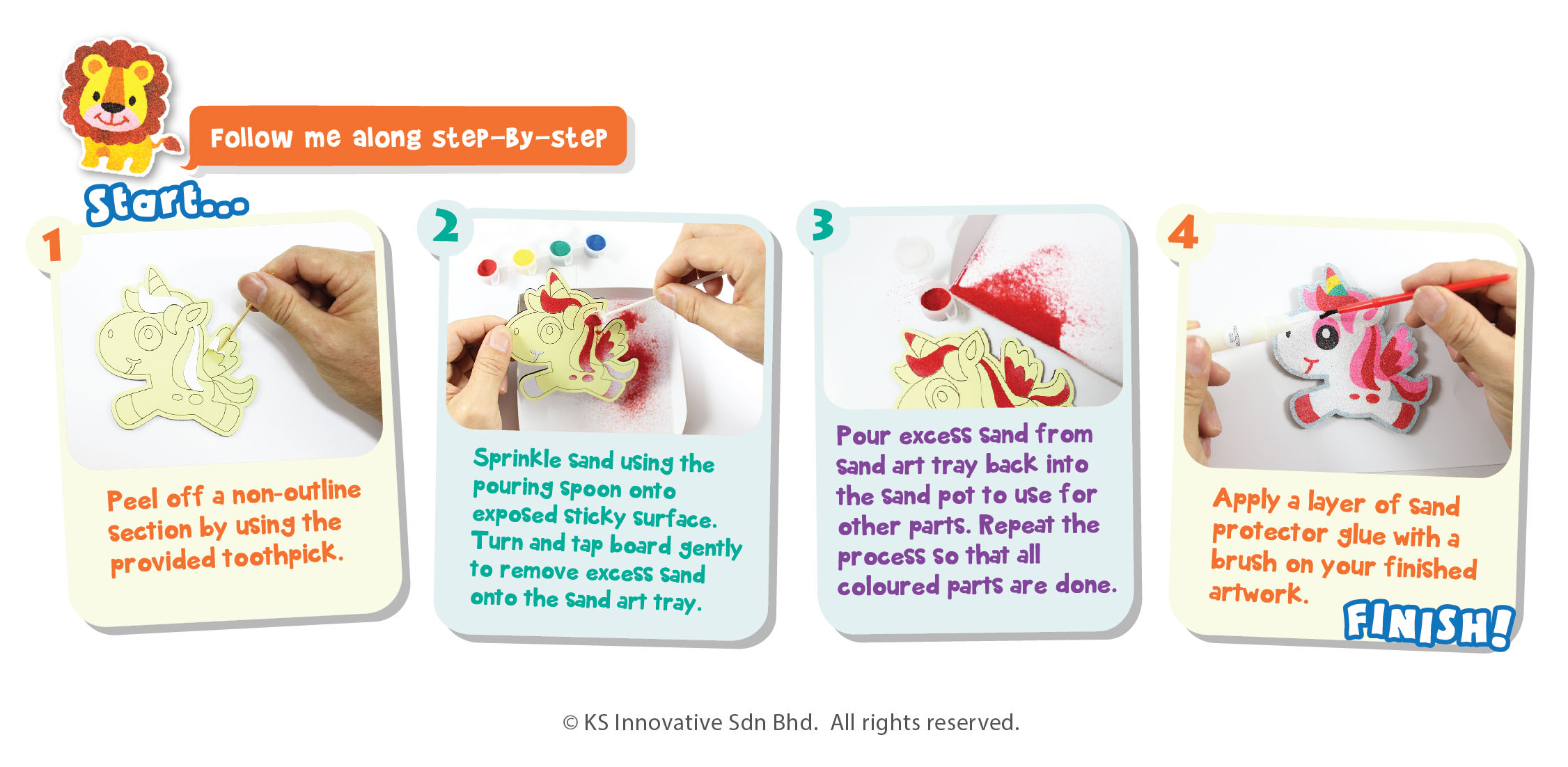 Wander into the animal kingdom with our Sand Art Animal Boards! They come in 5 cute animal designs, you may refer to our sand artist's colouring or colour your very own cute animal! This kit comes with everything ready, with a Sand Art tray to easily save more of your sand and sand protector glue to shield your sand art when it is complete.