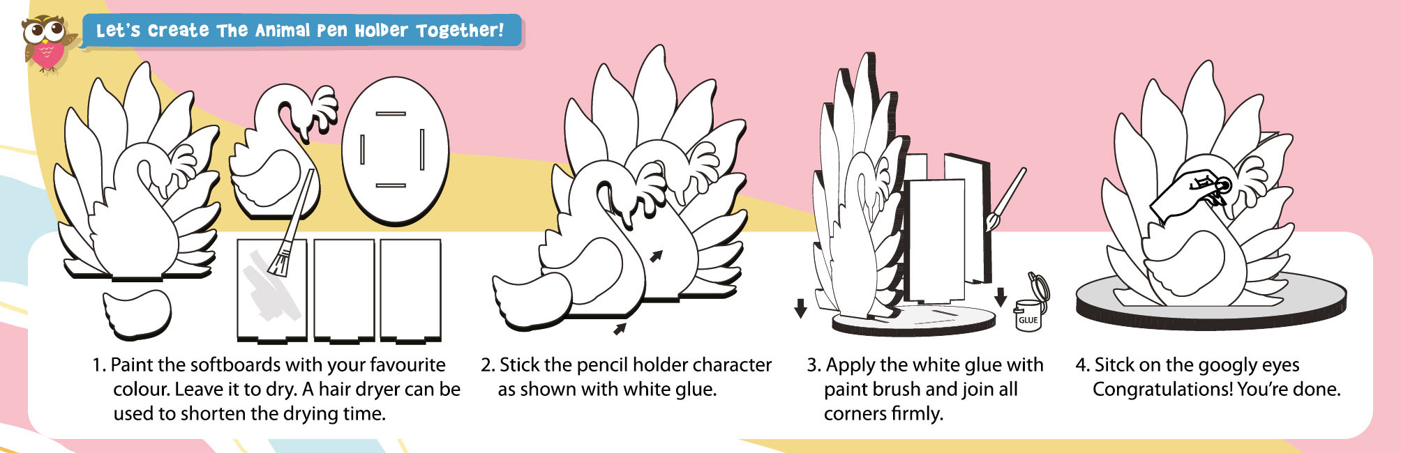 Assemble, paint and create your own Animal pencil holder characters! These Animals come in 3 different designs - Unicorn, Chicken and Peacock, adding flair to your study desk or work table. The kit comes with everything ready, only creativity is needed!