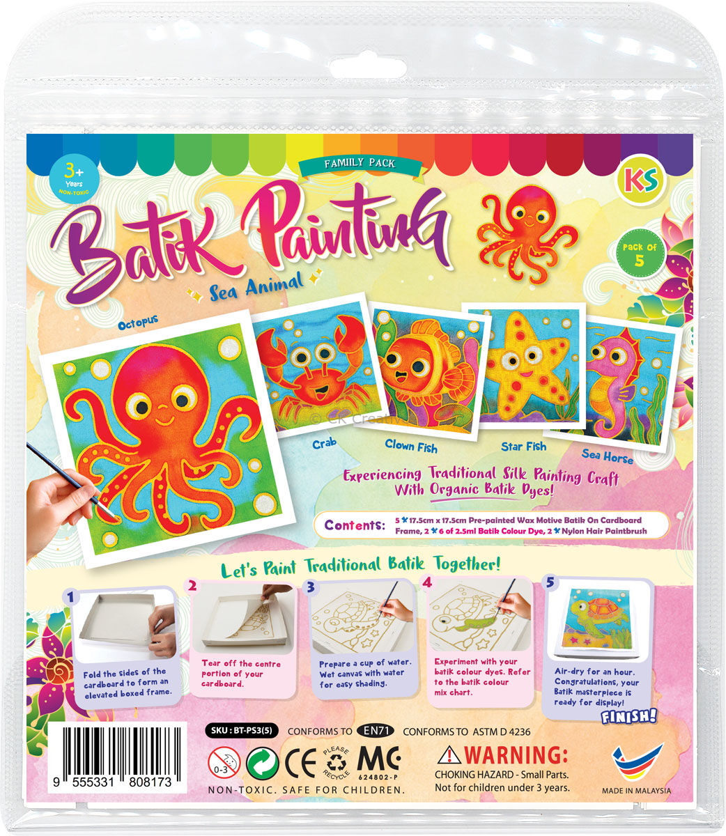 Create together. Share the fun. Celebrate the art and culture. With Batik Painting Small, every painting becomes a keepsake, and every moment becomes a memory. Perfect for children aged 3 and up – and adults who love to join the fun too!