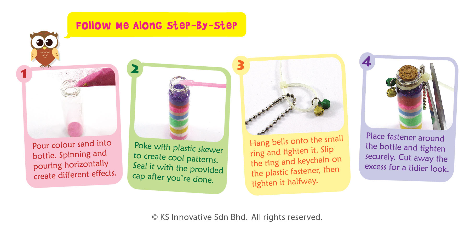 Let's create artistic sand bottles with little bells and decorate it anywhere! Great as gifts to your best friends as well.