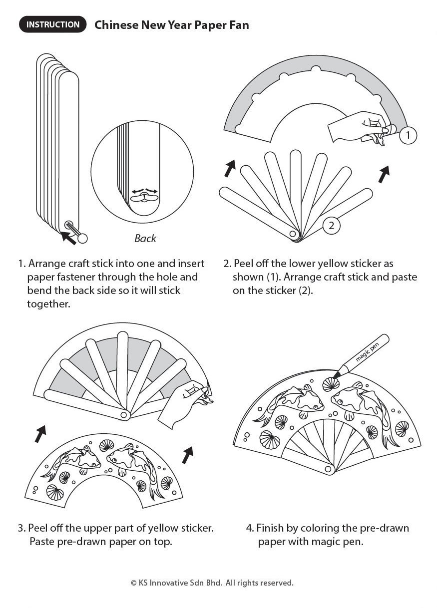 Breeze yourself with the wind of good prosperity with our Spring Flower Chinese New Year paper fan! This do-it-yourself paper craft involves pre-drawn spring flowers for easy colouring with markers or colour pencils. Kids will love constructing their own fancy paper fan from scratch!
