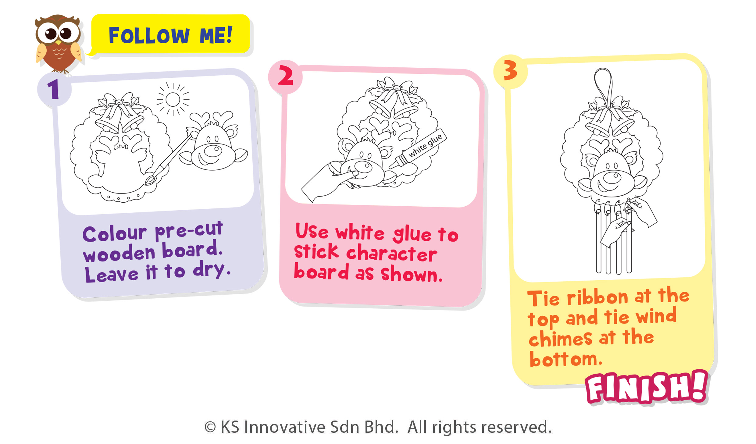 Cheer up this Christmas with sweet and magical Christmas themed Wind Chimes! Imagine the beautiful wind-blown sounds these fabulous, wood based characters with metal wind chimes produce at your favourite breezy spot! Not only are they beautiful to look at and brighten the area, the metal chimes makes incredibly sweet sounds when they clink in the wind that will definitely lift up your mood! Kids can choose between 4 cute Christmas designs - Penguin, Snowman, Reindeer or Santa - or you can collect all 4 of them! The kit comes with everything ready, the MDF wood characters are pre-drawn and pre-cut and just paint away! Also included is a pack of assorted colourful diamonds for that extra bling!