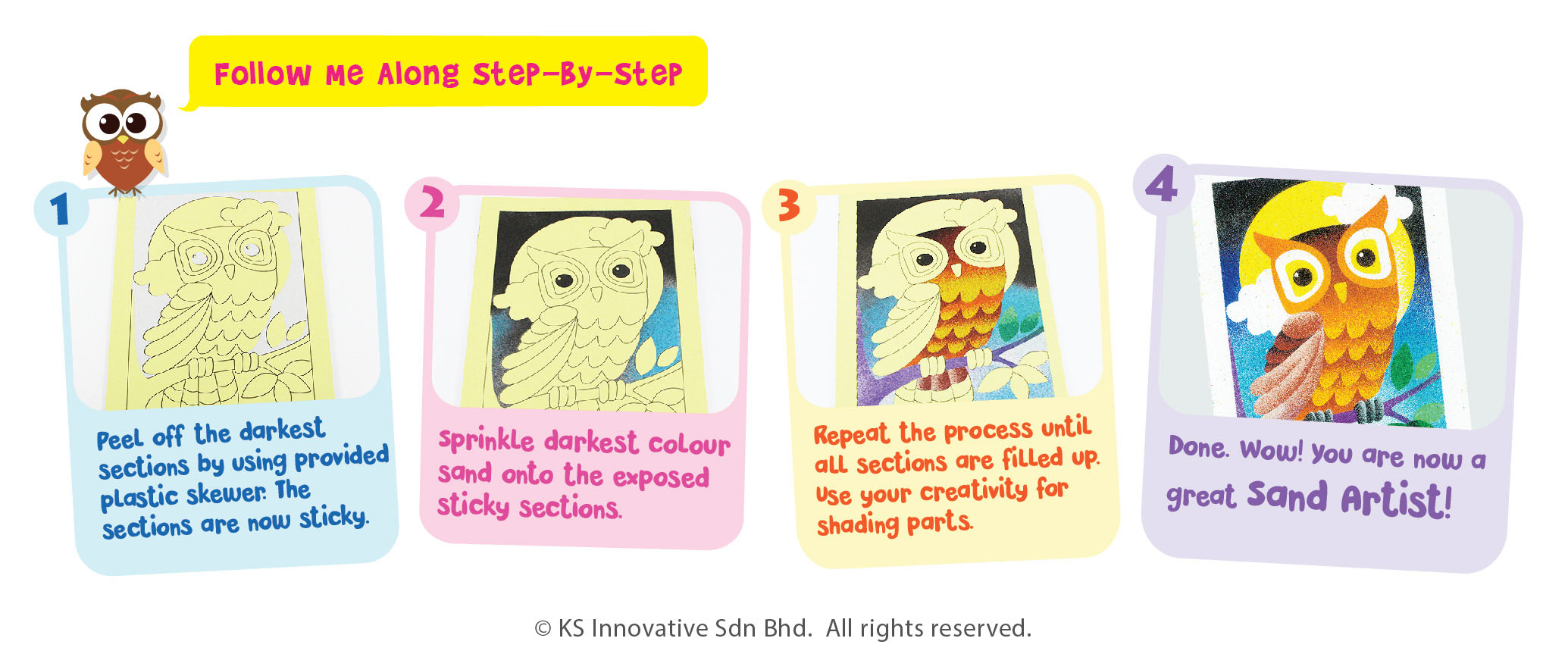 Birds of a feather flock together in our Garden Birds Sand Art! Our 5-in-1 Creative Sand Art series are designed in single-lined style where kids just have to peel and sprinkle, no scissors required! Keep completed sand art card neatly in plastic sleeve.