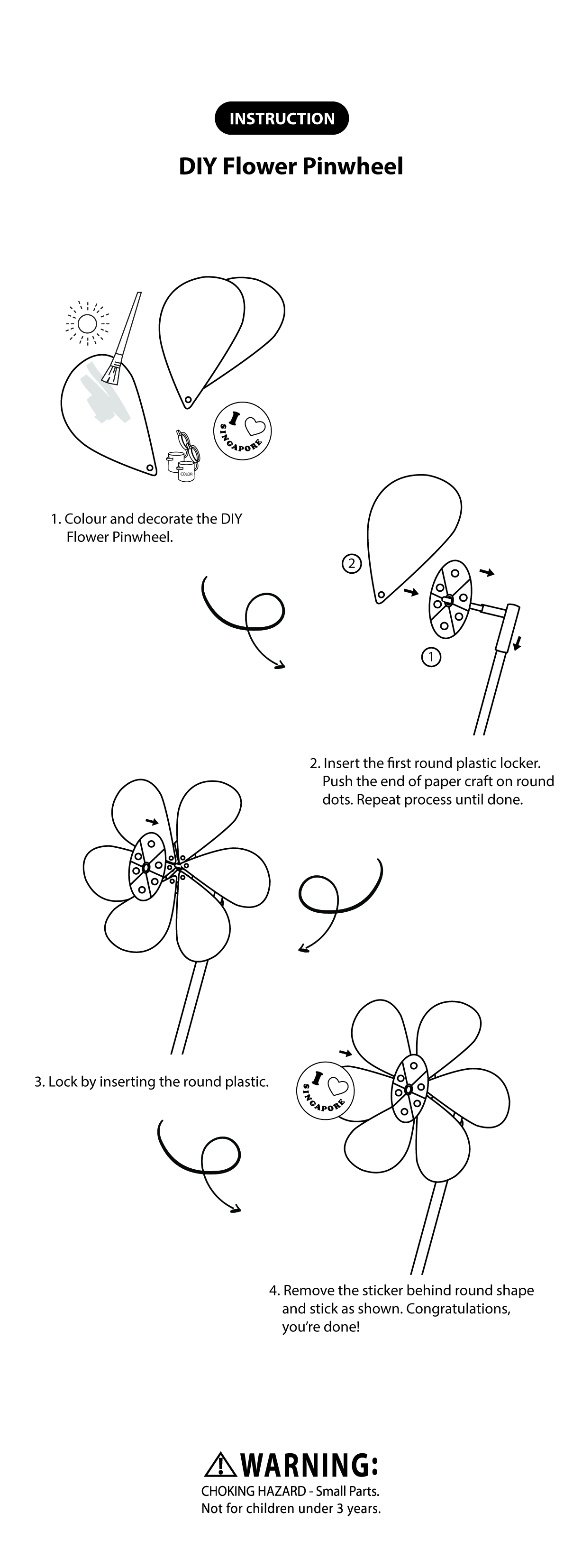 Craft and play with this DIY Singapore flower pinwheel! Kids will have fun colouring and assembling the pinwheels by themselves. Move and spin the pinwheel during Singapore National Day - let us all unite under one nation and be proud of our diversity and history!