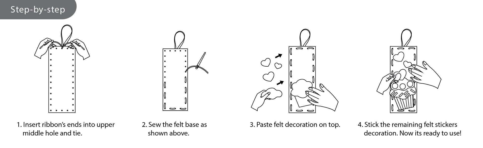 Journey through your favourite storybook pages with our do-it-yourself felt "Cutie" bookmarks! Packed in 5 assorted designs - Owl, Flowery Bird, Butterfly, Rabbit and Cupcake! Sew the border with our provided child-safe plastic needle, peel and paste felt stickers and lastly tie a ribbon atop the bookmark.