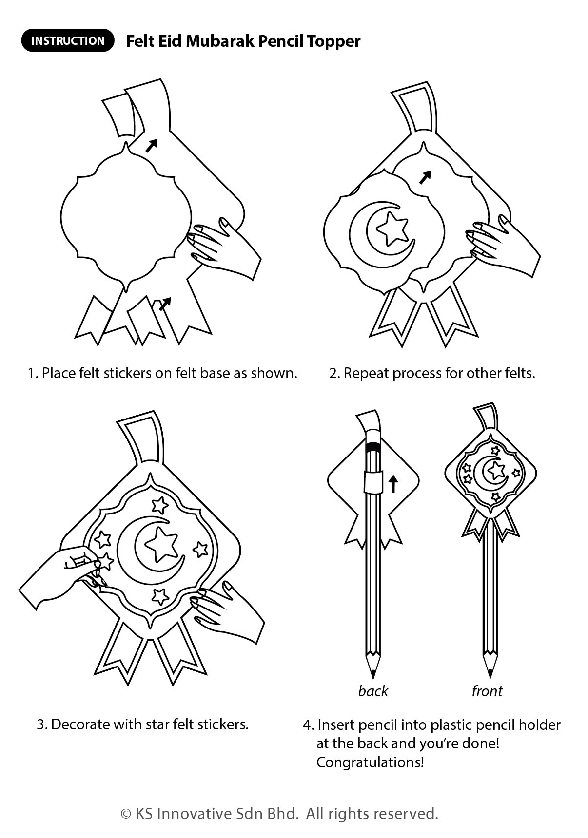 Feel festive at school or at home and dress up your pencils with DIY Raya pencil toppers! Comes in Ketupat and Crescent Moon motive, 5 each in a 10-pack activity kit. Kids will enjoy arranging and sticking felt stickers together.