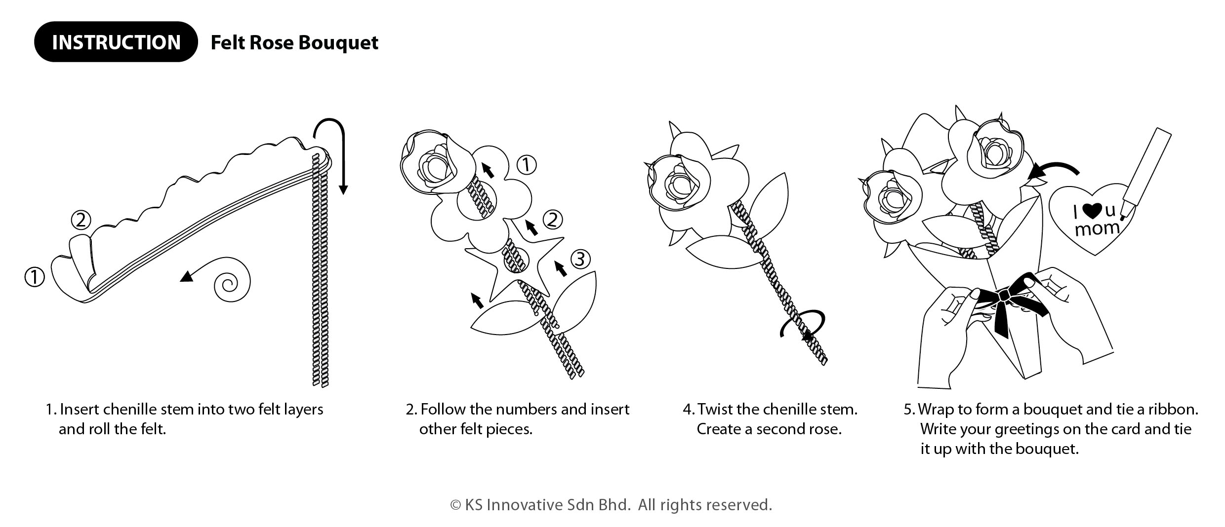 Give a bouquet of lovely felt red Roses on Mother's Day or Valentine's Day! Do-it-yourself craft does come with a personal touch - you may also write your personal message on the pre-cut heart shaped colour paper. Tie the bouquet with smooth white ribbon and it's ready to be presented!