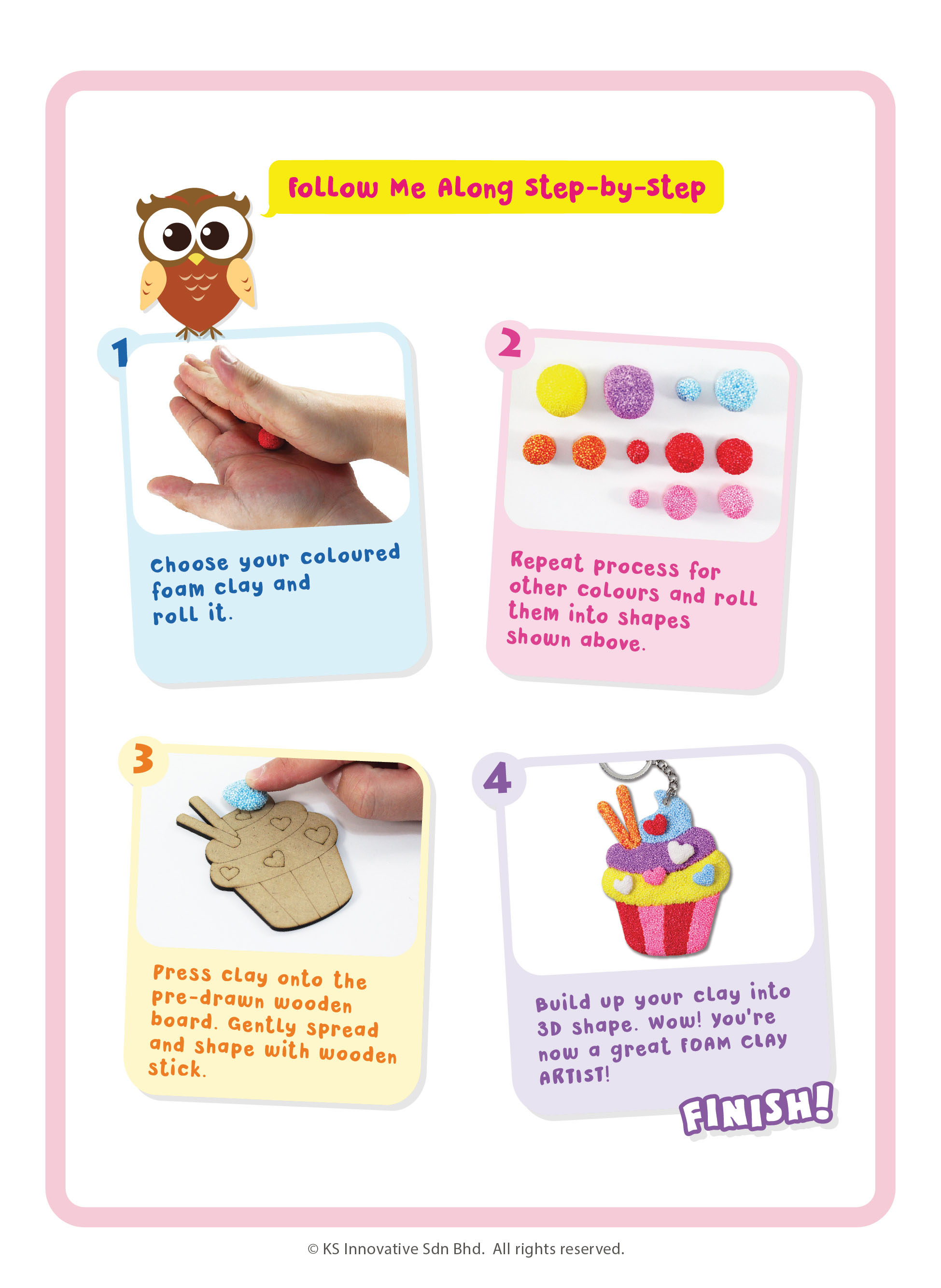Sculpt and display two sweet Foam Clay cupcake keychains! New and popular Foam Clay deco activity kit provides hours of fun while cultivating motor skills and patience. Foam Clay is a lightweight clay with beady texture, easy to sculpt and air-dry. Kids will adore rolling, squeezing, twirling, and pulling Foam Clay into 3D shapes.