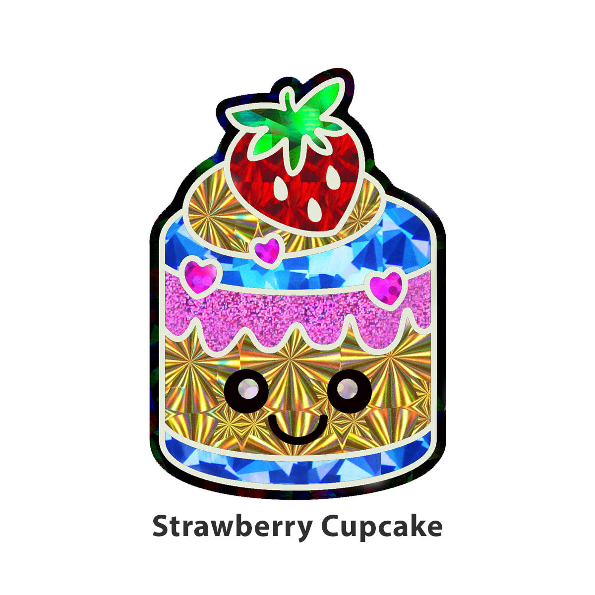 Strawberry Cupcake Delight: A juicy cupcake piled high with strawberry-flavored frosting and strawberry toppings. The sticky sections cover the strawberry, creamy frosting, and a happy-face wrapper for a fruity fiesta.