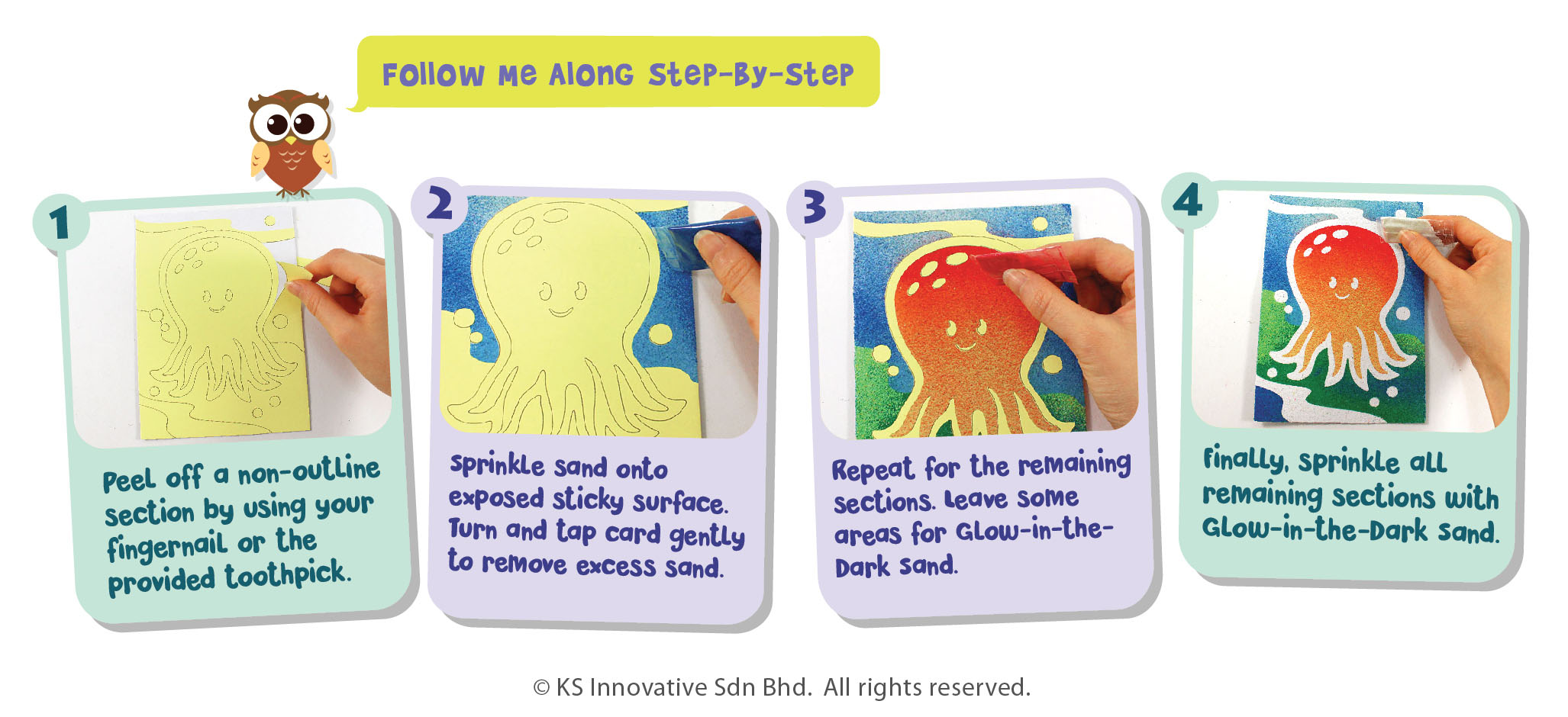 Peel and sprinkle beautiful Sand Art that glows in the dark at night! Get all and display on your bedroom walls. Comes in 10 different undersea and ocean theme!