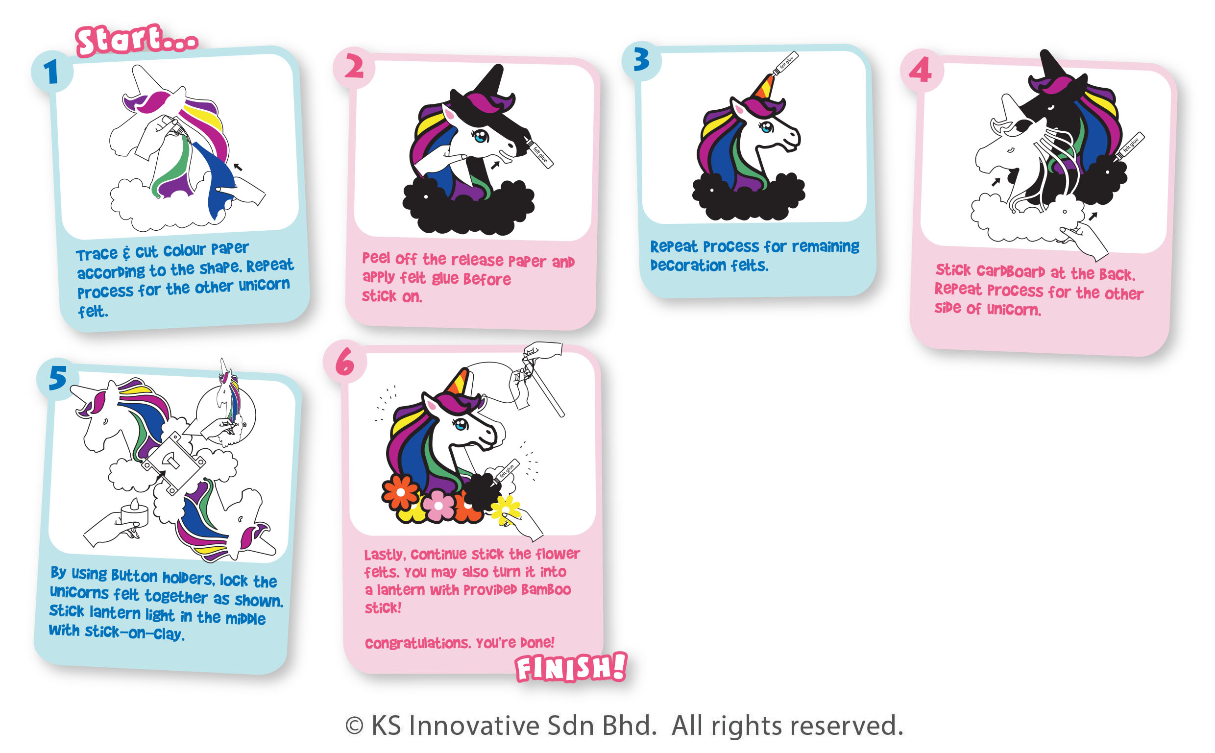 Imagine a cute and charming, handcrafted Felt table lamp radiating a soft, cozy glow on your table and desk! Our LED Cutie Felt Table Lamp comes in 5 adorable designs - an Owl, Rabbit, Dinosaur, Peacock and Unicorn! There is a design made for every kid, designed by our talented, in-house artists! They will love constructing their own table lamp with our step-by-step instruction! The main felt shape is pre-cut and paper cutting is easy to follow. Adult supervision is needed for installation of LED light. This cutie felt table lamp will be perfect for any space where a soft, comforting, and utterly cute lighting solution is needed!