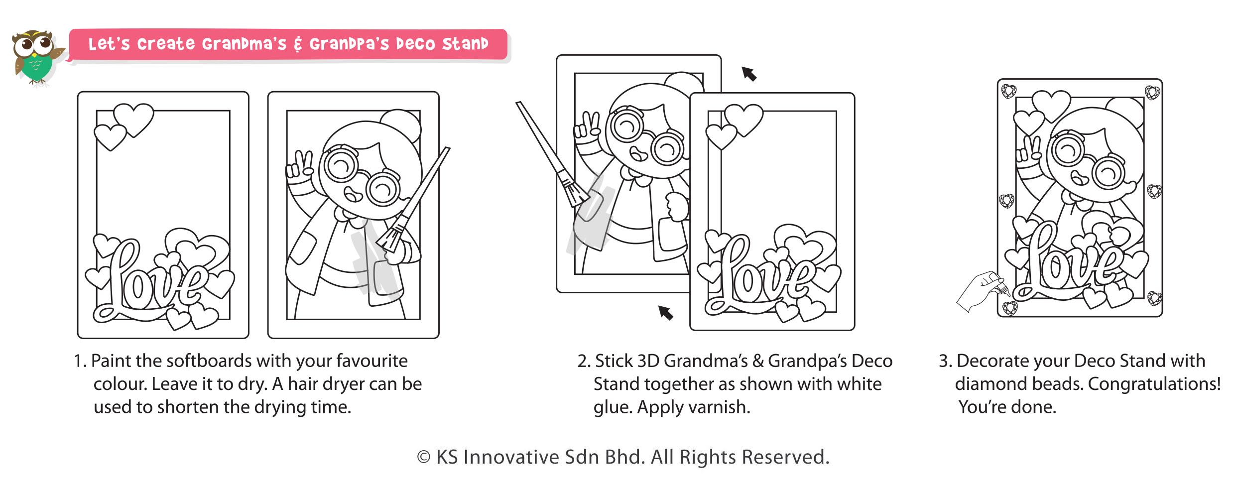 Paint with love for grandma and grandpa with our wooden 3D Grandma's And Grandma's deco stands! Comes in 2 beautiful designs comprising of "Love Grandma" and "Love Grandpa" stands. Your lovingly handpainted craft will warm your both your grandma's and grandpa's hearts and they look gorgeous displayed on table tops and work desks. The diamond beads also add a bling touch to the 3D effect!