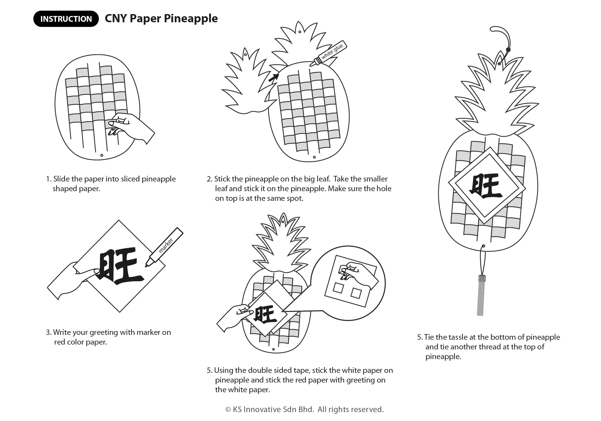 Create a paper Pineapple hanging decoration and celebrate Chinese New Year with artistic style! Write your custom word to usher in all the good luck for the year. The colour papers are pre-cut and kids will enjoy constructing from scratch. Weave ribbons on the body to resemble the Pineapple's thorns.