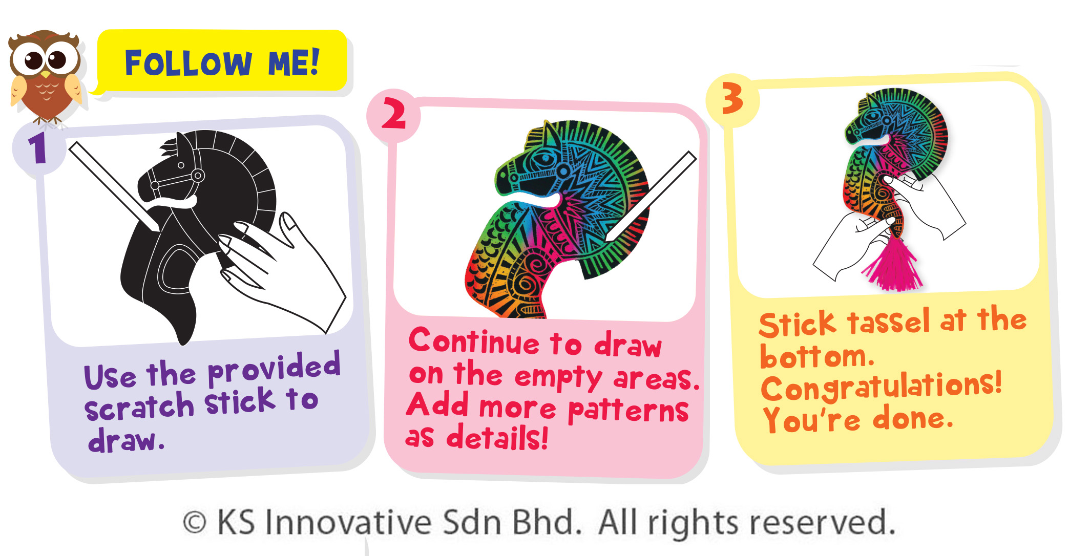 Let your imagination run wild doodling Kuda Kepang Scratch Art! Kuda Kepang is inspired from colourful traditional dance from Javanese culture in Indonesia which you can draw in Scratch Art fun in pre-cut and pre-printed design! Scratch doodling and repeating patterns lowers stress, relaxes and calms busy minds. As well as being a great creative outlet for everyone!
