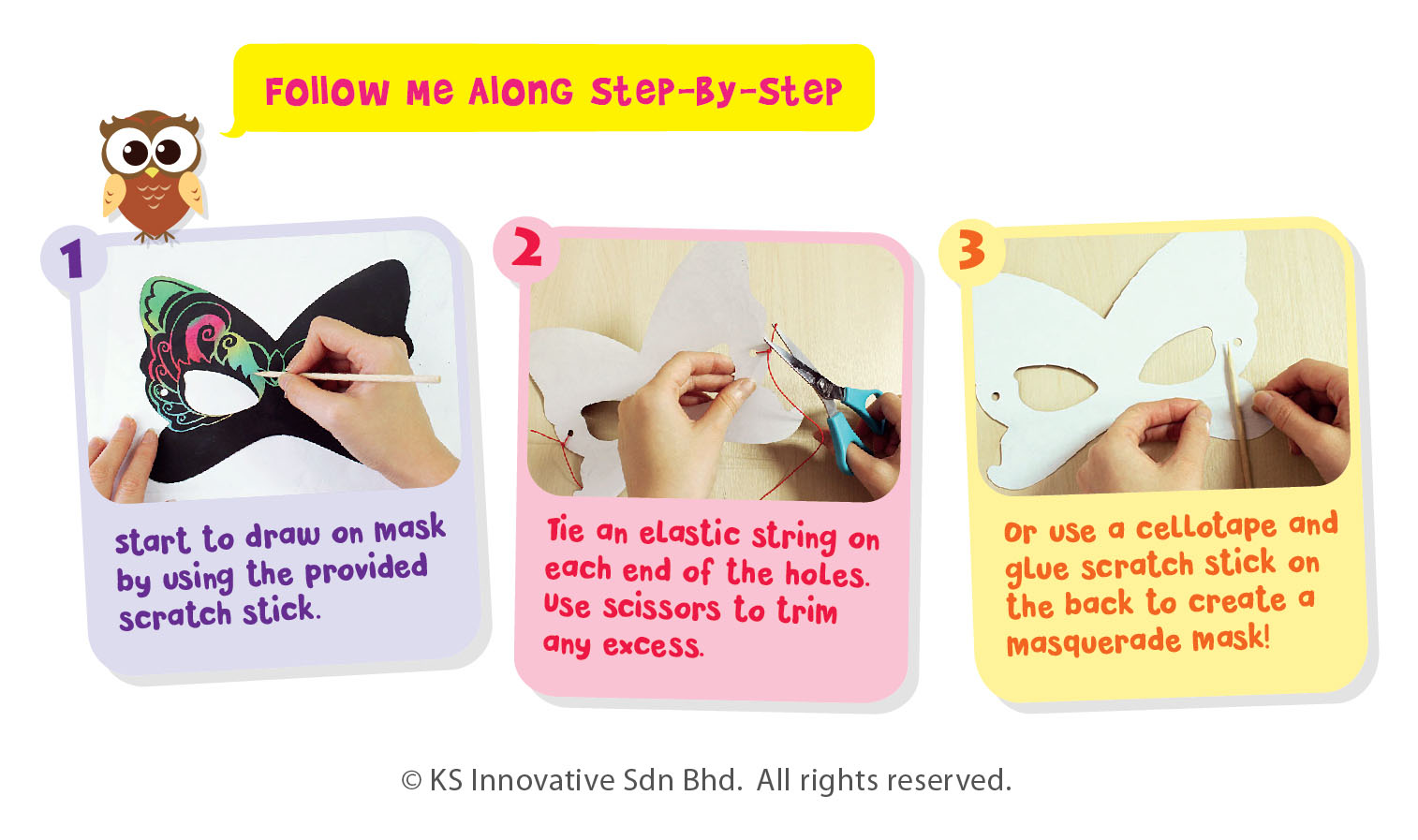 Having birthdays and costume parties with Scratch Art masks provide endless possibilities for these fun occasions! Comes in a variety of animal, heroes and pretty shapes to suit any themes. Divided to 5 girls' mask theme and 5 boys' mask theme. Scratching the black surface with the provided scratch art stylus will reveal beautiful rainbow-like colours underneath.