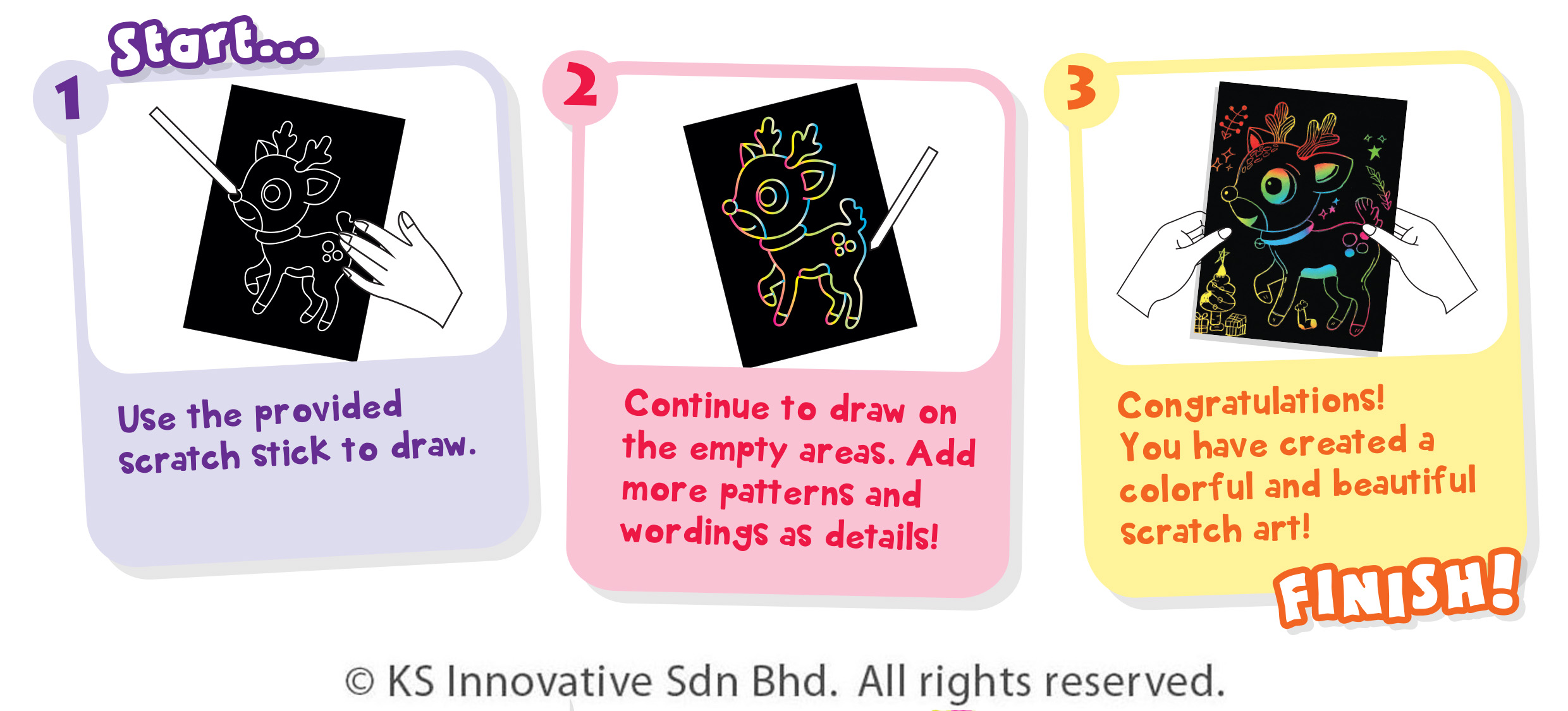 Scratch-doodle our new pre-printed Scratch Art cards in Wild Animals theme and see them reveal their beautiful rainbow colours underneath! This adorable Wild Animals theme includes Deer, Rabbit, Zebra and Giraffe. Scratch Art is a great craft to relax by using the stylus/scratch stick to scratch away the black layer and a wonderful way to unleash kids' creativity by drawing different patterns whether geometric, dots or lines! Kids will enjoy showing off their masterpiece to family and friends!