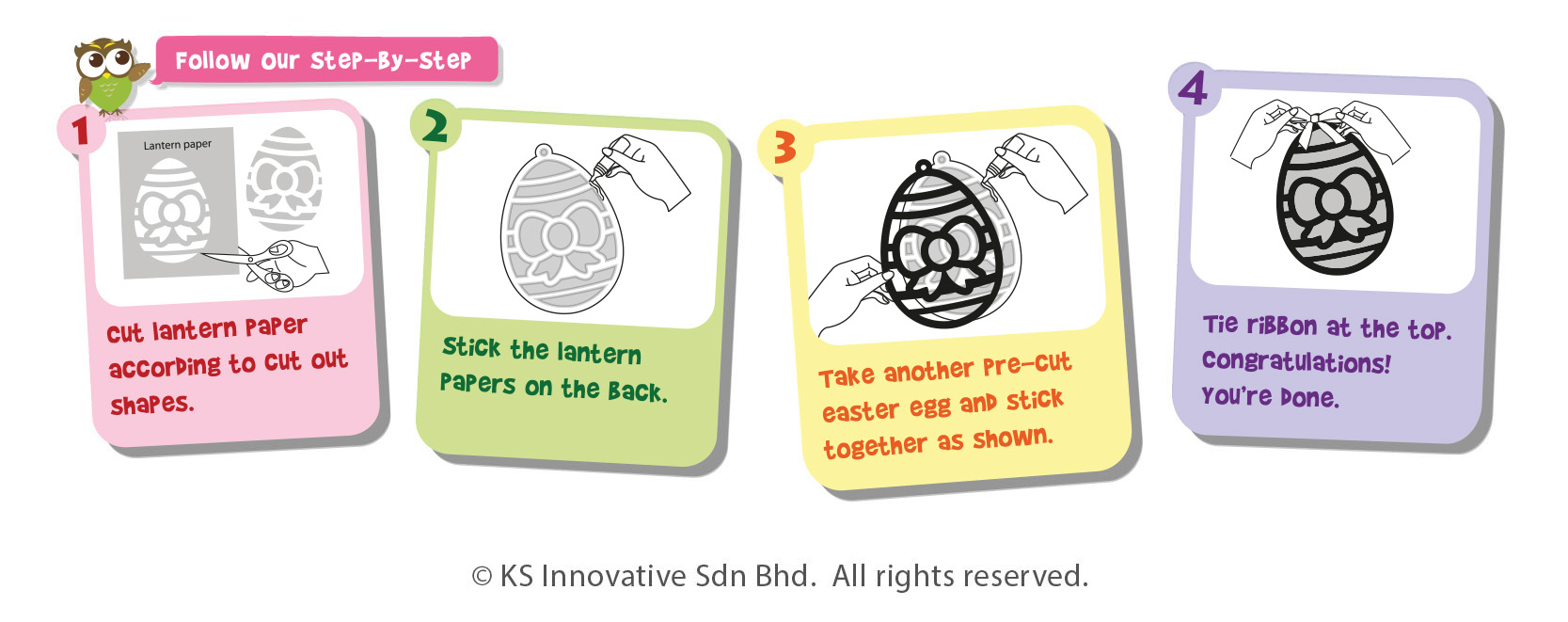 This Easter let's create 3 cute, stained-glass effect Easter egg window decoration and let the sun ray shine through them! Made of paper with everything ready in this kit, kids will love using their skillful hands to put together colourful lantern sheets on the black Easter egg silhouette.