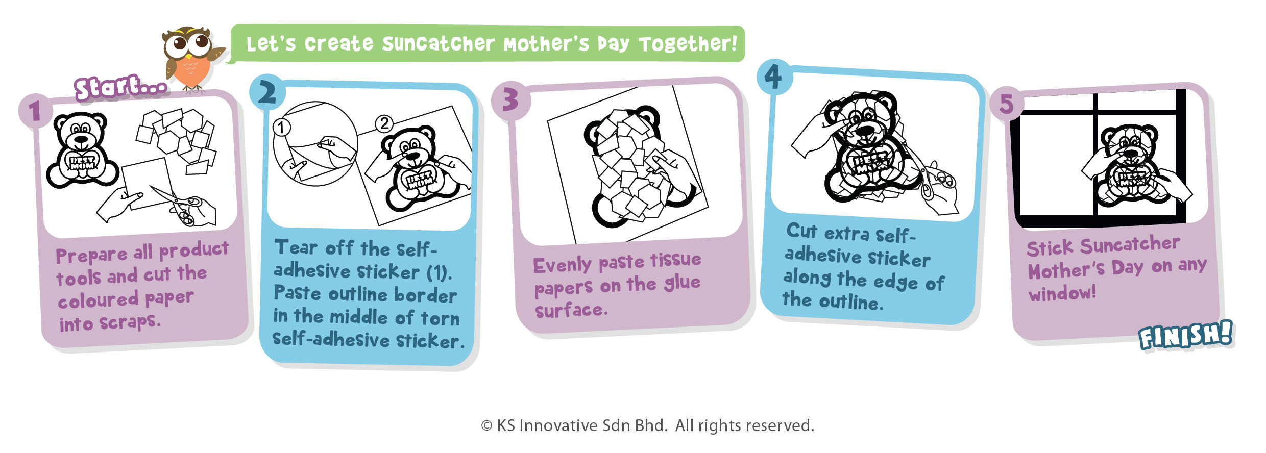 Honour motherhood and celebrate Mother's Day by making these adorable Suncatcher paper displays - Teddy Bear "Best Mom", Big Hearts with Little Hearts and Mom with Rose! These stained glass effect self-adhesive craft displays nicely on windows and letting the sun shine through them makes the reflective light all the more colourful and interesting! Create the colourful effect by pasting coloured paper on top of each other. Scissors is needed to cut each shape out.