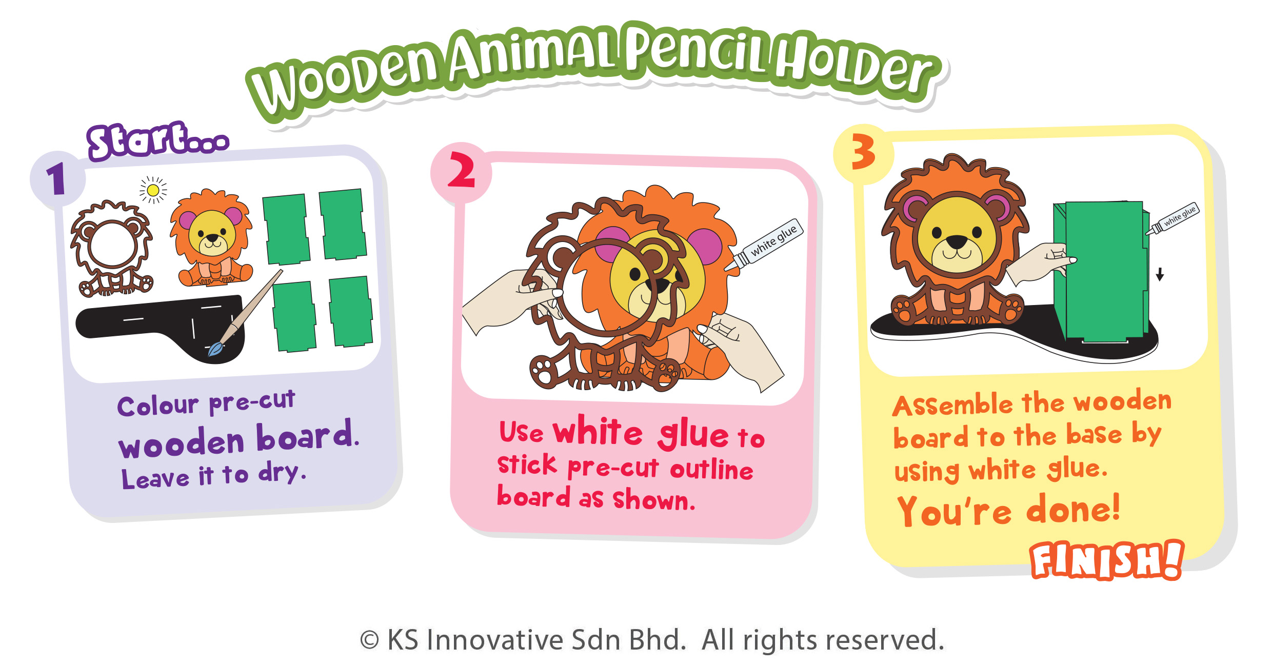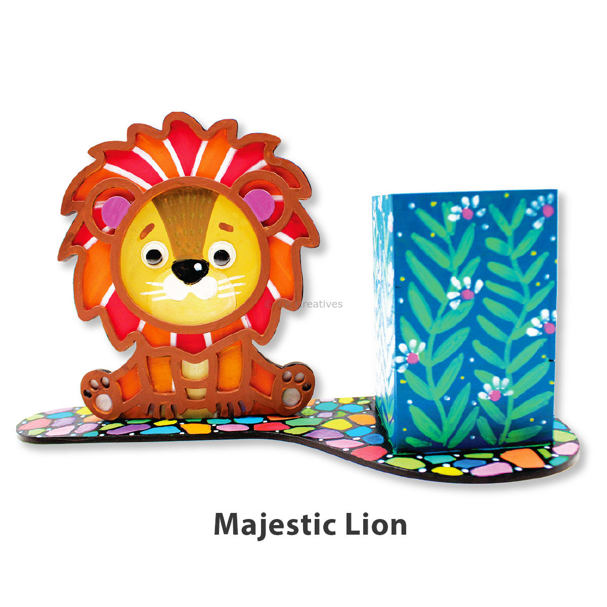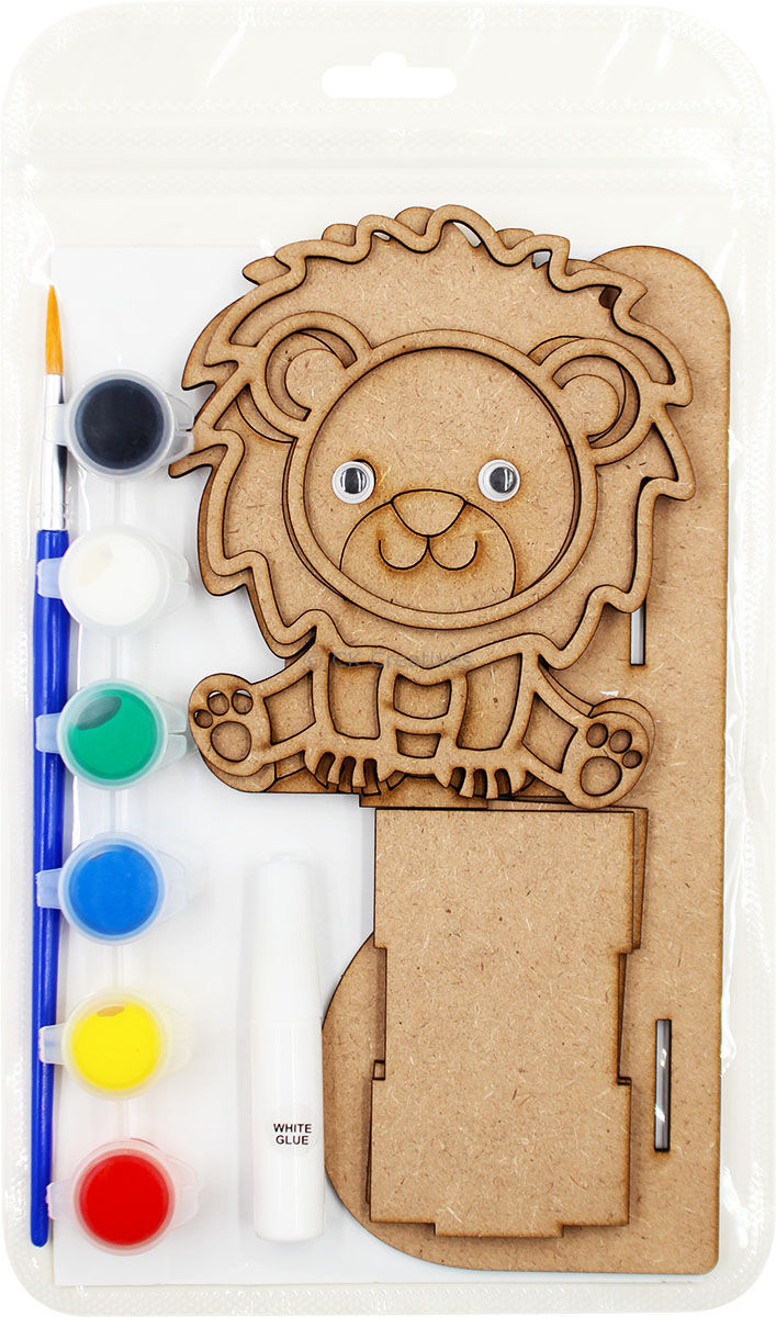 Get ready for a crafting and organizing fun with our Wooden Animal Pencil Holder Craft Kit! Transform your desk into a vibrant wildlife haven with two delightful designs: the Majestic Lion, proud ruler of the savannah, or the Graceful Deer, elegant star of the forest!