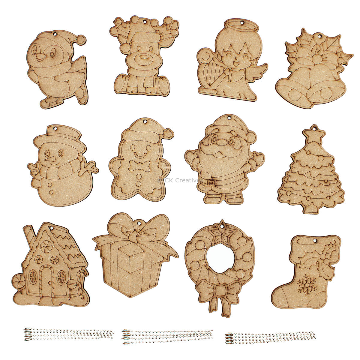 12 x Pre-cut wooden Christmas ornament board