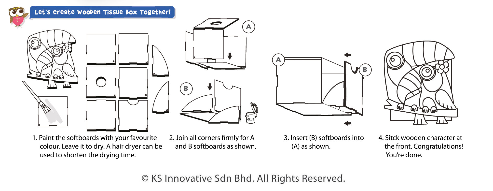 Pull tissues out of colourful, bright and creative tissue boxes that kids can customize and paint! Allow them to express their artistic side, reduce waste and create a unique and functional container for tissues. Our Wooden Tissue Box Painting Kit comes in 4 great designs - Toucan, Angelfish, Unicorn and Bears. The tissue box fits round tissue rolls. The kit comes with everything ready, just creativity is needed!